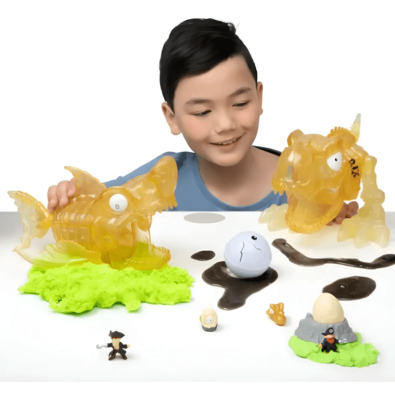 - Gran cráneo de dinosaurio con múltiples zonas para “smash” (abrir/romper) y revelar premios.