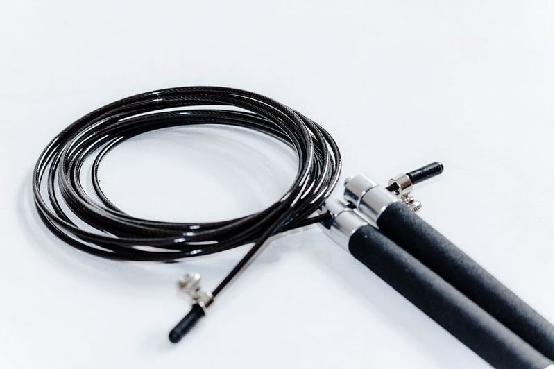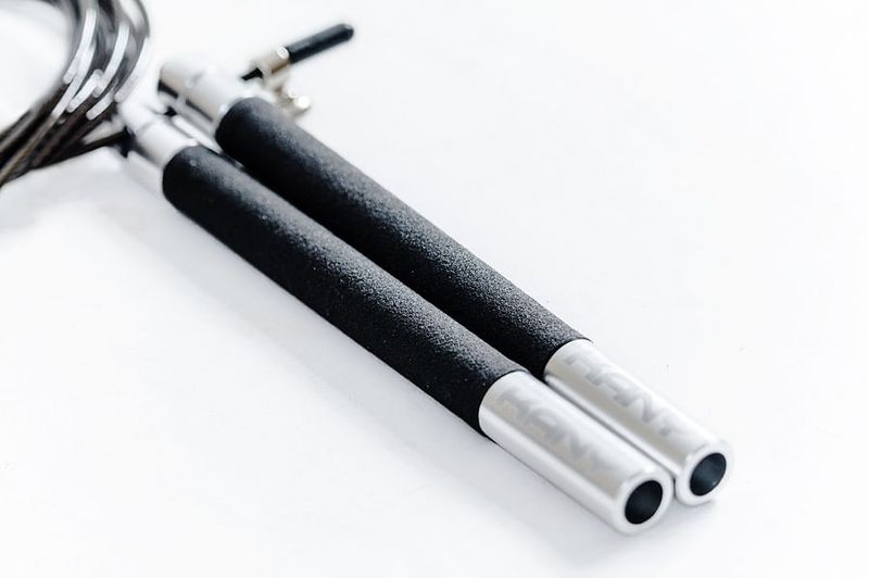 "Soga de acero con cubierta de PVC, Mangos ergonómicos y anti deslizantes de PVC, 4 rodamientos internos. Colores: azul, dorado, plateado, negro, rojo. Medidas: Largo: 3m