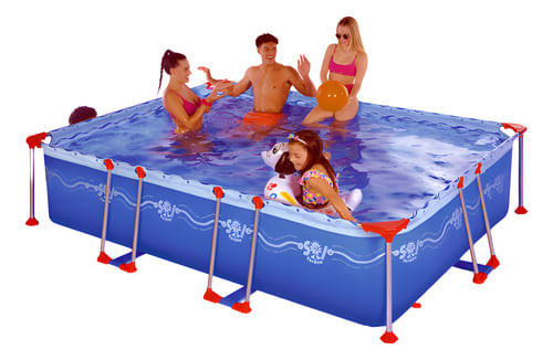 Pileta con estructural desarmable confeccionada en lona de tejido poliester recubierto con PVC. Armazón de caños acero reforzado