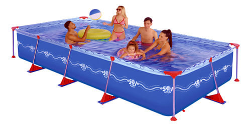 Pileta con estructural desarmable confeccionada en lona de tejido poliester recubierto con PVC. Armazón de caños acero reforzado