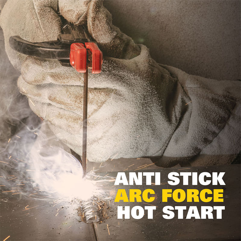 * Dispositivo de arranque en caliente (Hot Start): aumenta temporalmente la tensión de salida, facilitando el encendido del arco eléctrico, evitando que el electrodo se pegue y provoque una soldadura defectuosa.