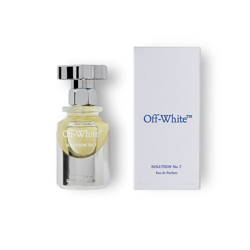 Off-White™ Solution Nº7 Eau de Parfum, creada por el perfumista Alexis Dadier, es una fragancia ambarada y amaderada que fusiona calidez resinosa con un frescor especiado inesperado.