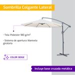 Sombrilla Colgante Lateral Jardín 3mts Beige Con Manivela
