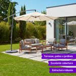 La Sombrilla Colgante de 3 metros de diámetro en color Beige es perfecta para disfrutar del exterior con estilo y protección. Su estructura de acero reforzado y su sistema de apertura con manivela permiten un uso práctico y duradero.