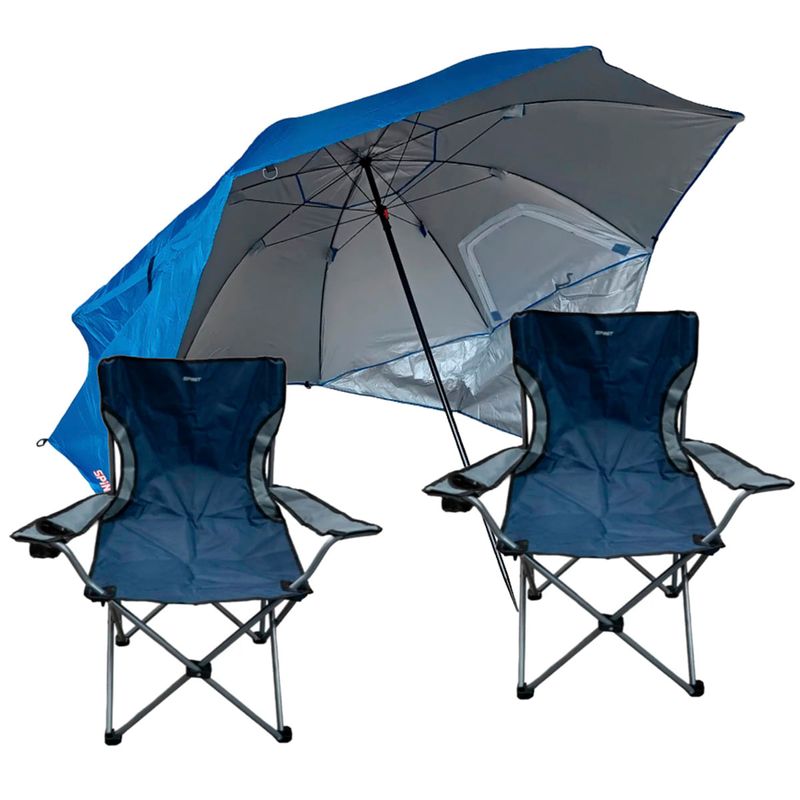 SOMBRILLA CON ROMPEVIENTOS 2.40 + 2 SILLONES DIRECTOR 100