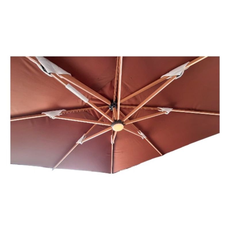 Con posiciones regulables, podrás ajustar la sombrilla para bloquear el sol en cualquier momento del día, adaptándola a tus necesidades. Las luces LED integradas en la sombrilla funcionan mediante una batería recargable USB-C, lo que te permitirá disfrutar de un ambiente iluminado sin preocuparte por cables ni enchufes.