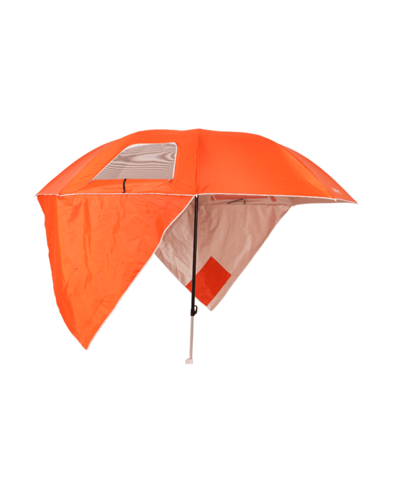 Disfrutá de la protección ideal con esta sombrilla de 240 cm de diámetro y diseño refugio con alas y deflector de viento. Su tela de poliéster aluminizada de 70g ofrece protección solar UPF50+. El mástil de acero con recubrimiento epoxy (22/19 mm) y varillas de 4,5 mm garantizan resistencia y durabilidad. Incluye estacas y vientos para una sujeción firme en cualquier ambiente. Perfecta para tus días al aire libre.