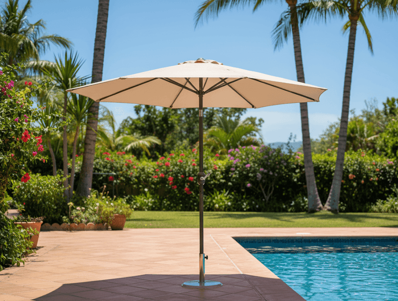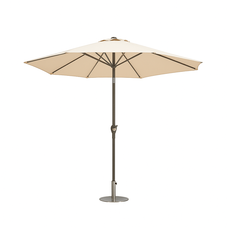 - Manivela y sistema de inclinación: Permite ajustar fácilmente el ángulo de la sombrilla según la posición del sol