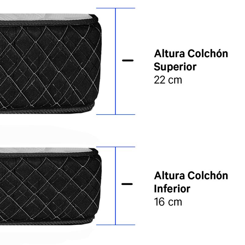 En la medida 200x090 cm, el colchón inferior es de 190x080 cm