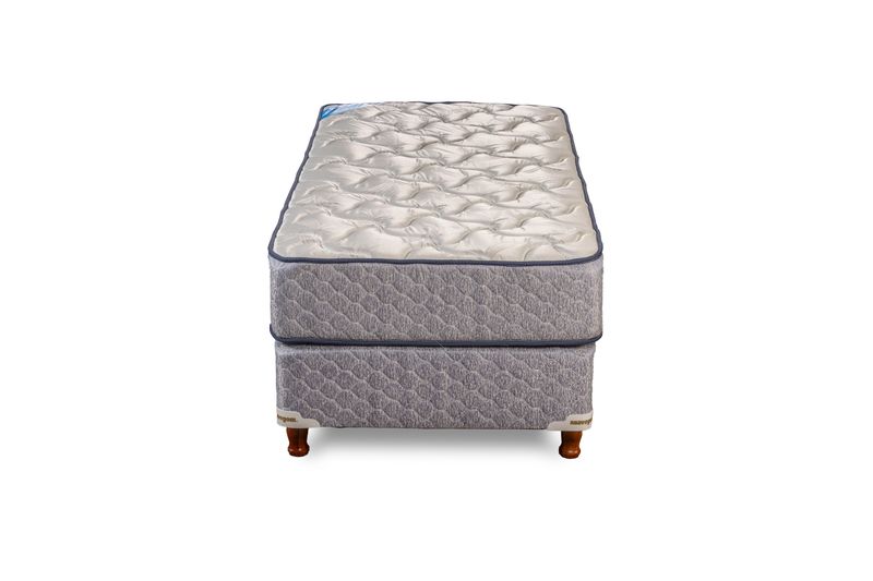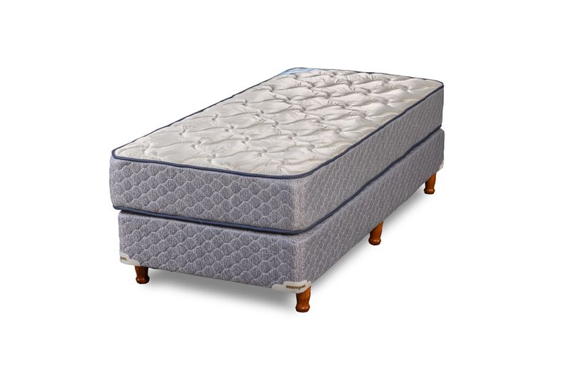Colchón de espuma de altísima densidad con una altura de 24 cm, que resiste hasta 110kgs por plaza. Con base sommier haciendo juego.