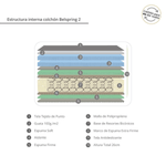 sommier y colchón Belmo Belspring 2 190x100 es ideal para quienes buscan un descanso firme, con buena ventilación y estructura resistente. Su interior combina resortes Bonell con refuerzos perimetrales y una tapa superior matelaseada suave al tacto.
