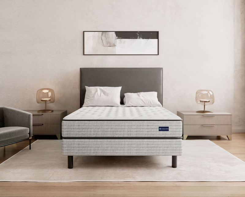El conjunto con 57 cm de altura total, se presenta como una opción firme, cómoda y accesible, creada para quienes valoran la simpleza y la confianza de un colchón de siempre.