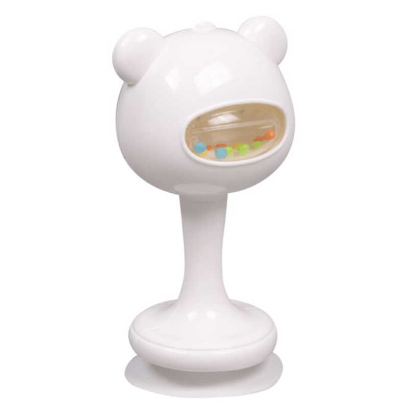 Un sonajero panda fácil de colocar en sillas altas y en todas las superficies lisas gracias a su pie con ventosa reforzada que garantiza una excelente estabilidad.
