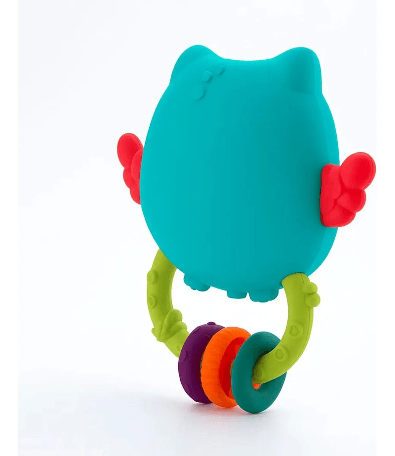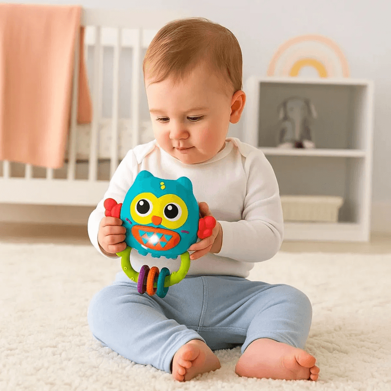¡Diversión y estimulación en un solo juguete! El sonajero musical Lechuza Kydos acompaña a los más pequeños con sonidos suaves, colores llamativos y texturas agradables al tacto.