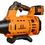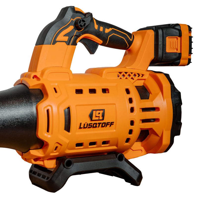 Soplador inalámbrico portátil alimentado por batería de 18 V y 4 Ah, equipado con motor brushless de alto rendimiento. Capaz de generar un caudal de aire de 800 m³/h con velocidad de salida de hasta 130 km/h, este equipo está diseñado para limpieza eficiente de residuos en exteriores, veredas, patios y jardines.