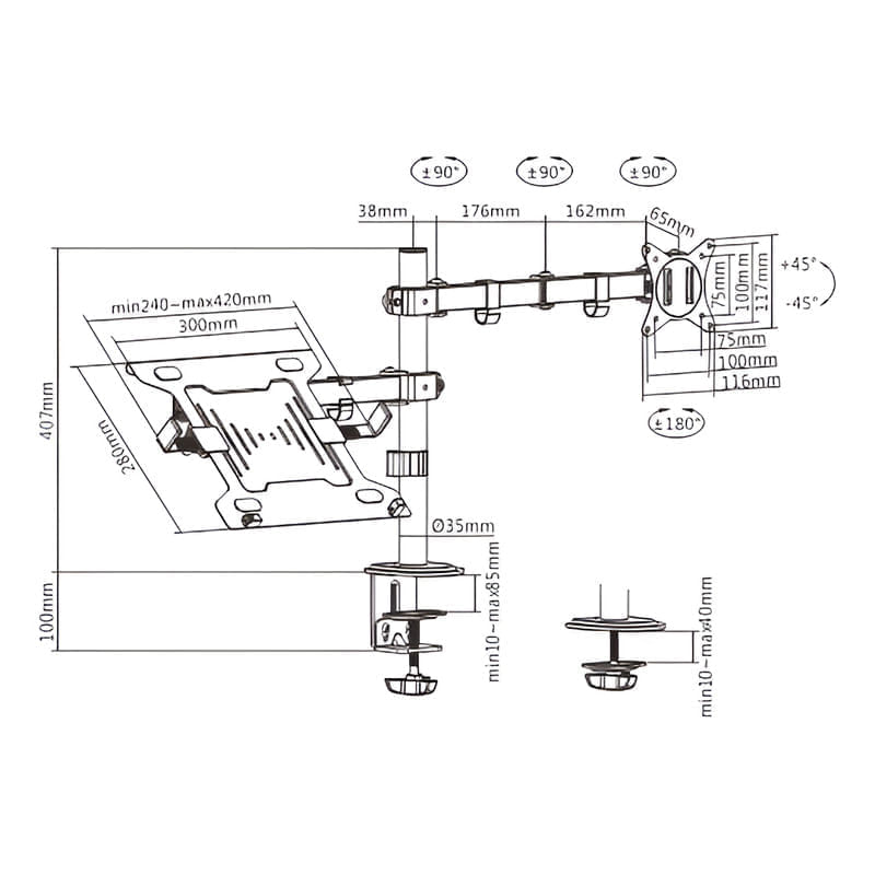SOPORTE ONEBOX OB-LCD25 PARA ESCRITORIO MONITOR DE 13 A 32" Y LAPTOP DE 10 A 16"