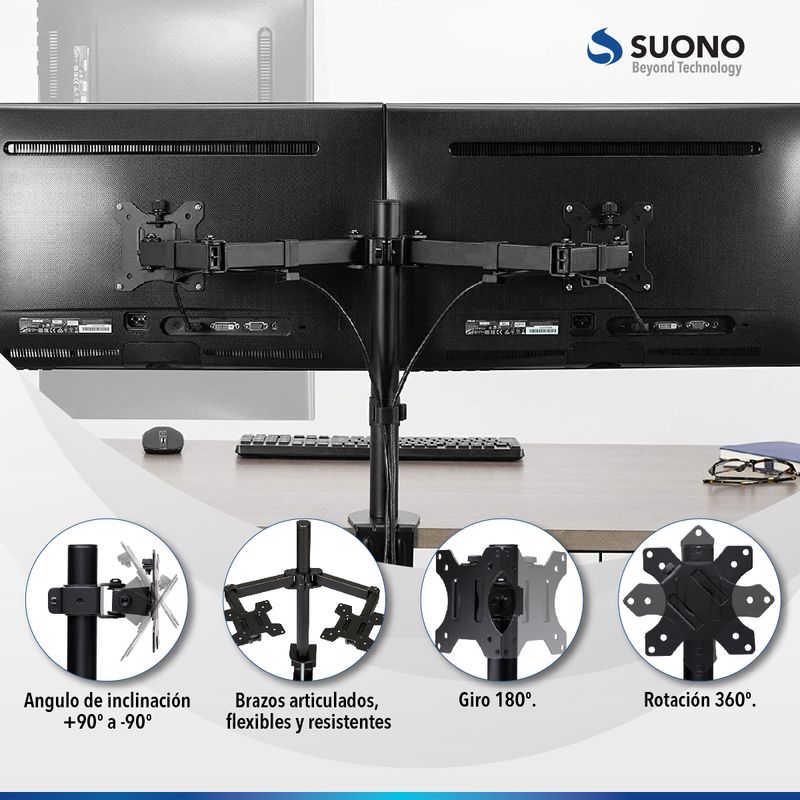 Soporte para Monitor Doble Suono de Mesa Articulado