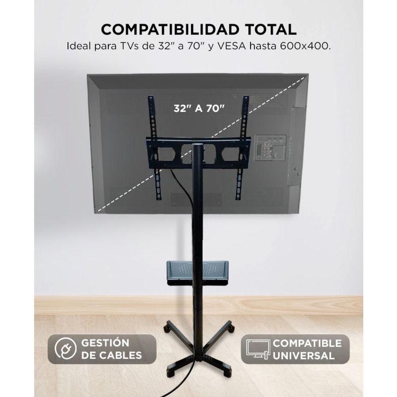 Compatible con pantallas de 37" a 70" y soportes VESA estándar (hasta 600x400), garantizando un ajuste perfecto.