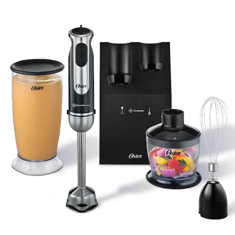 El stick mixer Oster® te permite preparar tus bebidas y recetas favoritas, tales como sopas, puré de tomate, malteadas y mucho más. Su base está diseñada para guardar la batidora y los accesorios, manteniendo el mostrador de la cocina organizado.