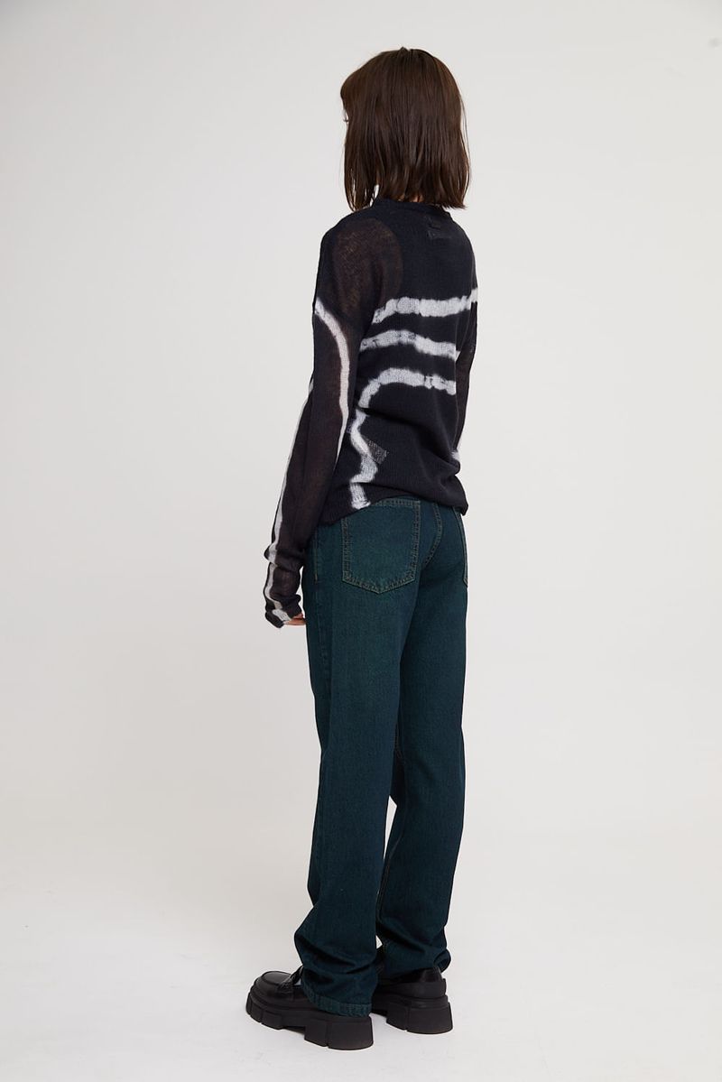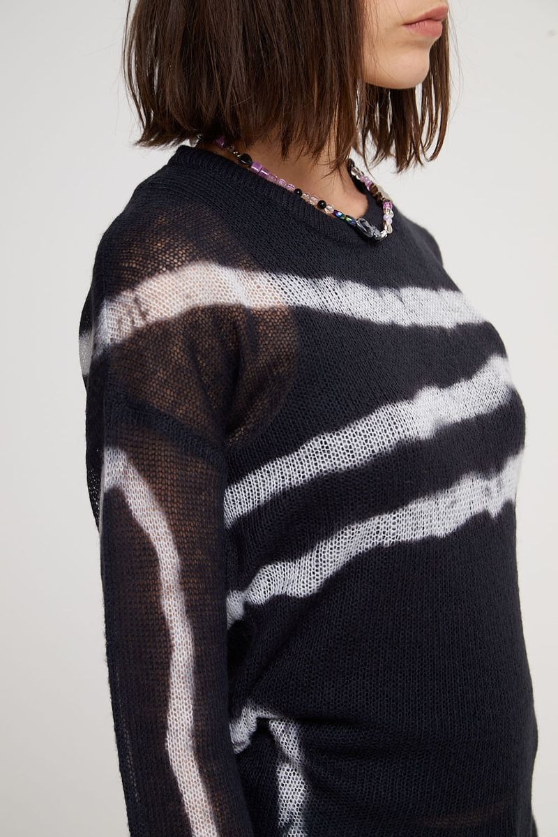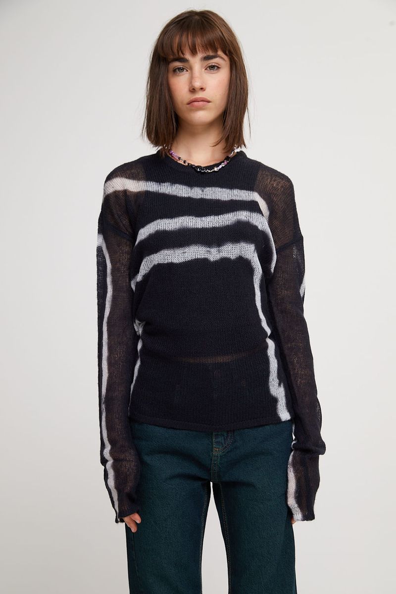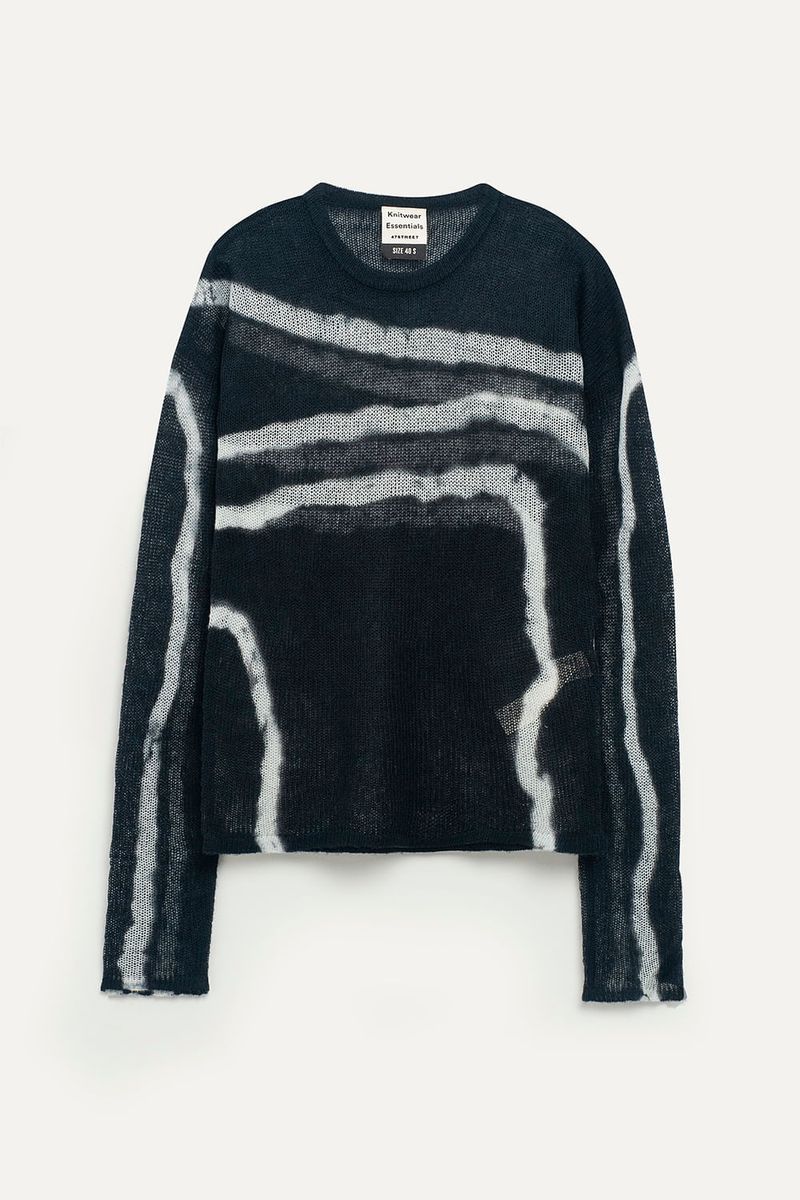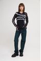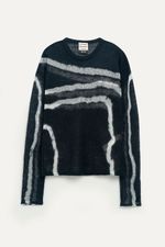 Sweater mangas largas con diseño de batik a contra tono en delantero, espalda y mangas. Terminaciones en cuello, mangas y bajo. Avíos marcarios.
