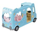 El piso de arriba tiene asientos para disfrutar del trayecto viendo toda la Aldea Sylvanian. Cuando llegamos a nuestro destino podemos bajar convirtiendo esos asientos en escalera o tobogán. ¿Están todas las atracciones del mundo de Nursery ocupadas? ¡Transforma los asientos en balancín!