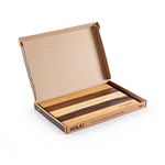 Medidas: 32 cm x 22 cm. Espesor: 2 cm. Laterales: Cortes a 45° para facilitar la manipulación. Uso: Cocina diaria, presentación de platos, cortes, apoyo de utensilios. Seguridad: No libera microplásticos al cortar. Propiedades higiénicas: Antibacteriana por naturaleza. Estabilidad: Mayor peso, evita deslizamientos. Durabilidad: Larga vida útil con el cuidado adecuado. Reparabilidad: Puede lijarse y restaurarse. Diseño: Tonos naturales, vetas únicas, uso decorativo.