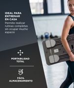 Incluye bandas elásticas, manijas, almohadilla para rodillas y otros accesorios que amplían las posibilidades de entrenamiento y permiten adaptar la rutina a distintos niveles.