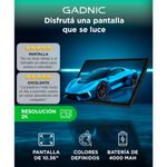 La Smart Tablet Gadnic 10.36” cuenta con pantalla Incell de 2000×1200 píxeles, que brinda imágenes nítidas y colores equilibrados. Mejora la experiencia al ver contenido multimedia, leer documentos o navegar durante períodos prolongados sin fatiga visual.