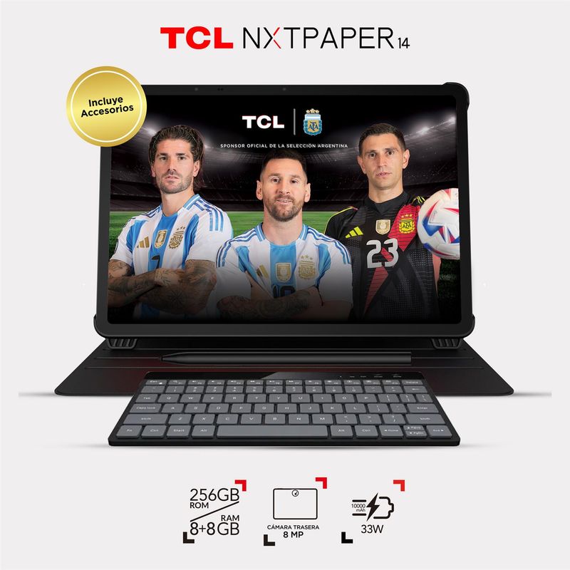 Tablet TCL NXTPAPER 14" con pantalla antirreflejos de 14,3” y tecnología NXTPAPER 3.0 para una experiencia visual similar al papel. Disfruta de lectura y streaming sin fatiga ocular gracias a su brillo y temperatura de color ajustables.