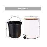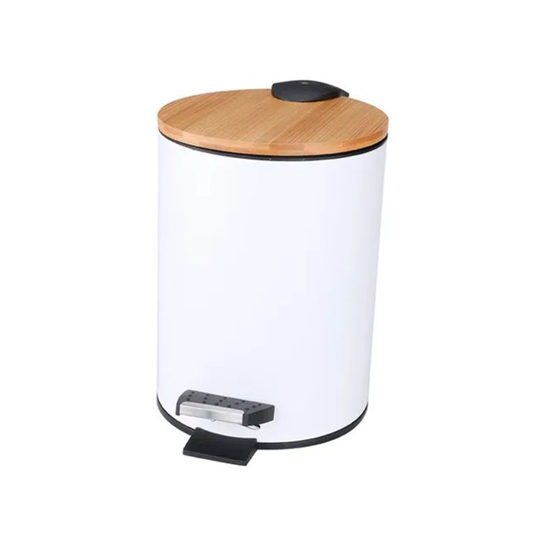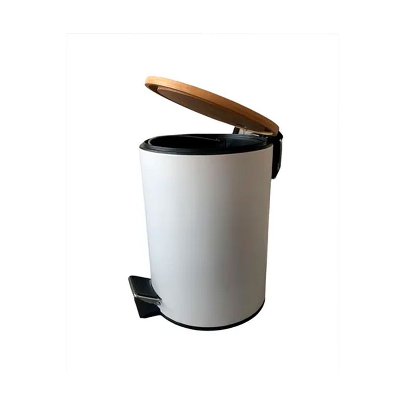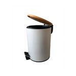 Papelera redonda con pedal y tapa de bambú. Capacidad: 3 litros, ideal para baños, oficinas y espacios pequeños. Cuenta con un pedal para apertura manos libres, y un cubo interior extraíble con asa para facilitar la limpieza, el acabado blanco y la tapa de bambú le otorgan un aspecto moderno y elegante