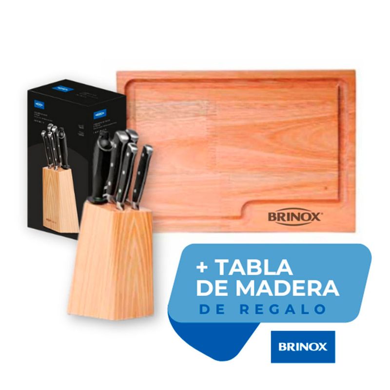 Juego de cuchillos 7 piezas con taco de madera Infinity + Tabla de madera de regalo