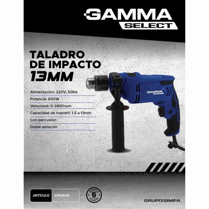 El Taladro percutor Gamma TIG-908 combina potencia, precisión y versatilidad para que puedas trabajar sobre distintos materiales con total eficiencia. Con un motor de 650W, velocidad variable hasta 2800 rpm y selector de percusión, es ideal para perforar madera, metal, mampostería, concreto, vidrio y cerámica, siempre con la mecha adecuada.