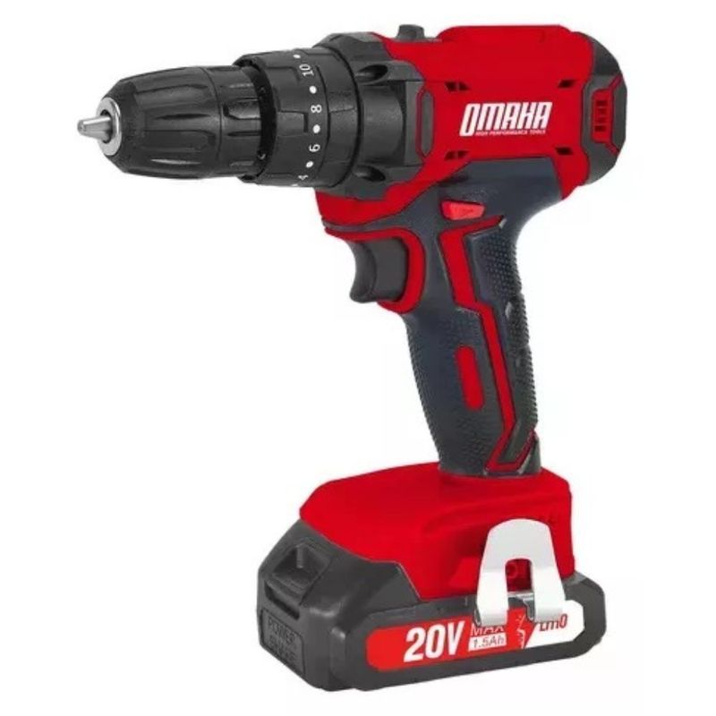 » Características: Marca: Omaha Modelo: TBAT-20Es inalámbrico: Sí Con función percutor: Sí Tamaño del mandril: 10 mm Con función destornillador: Sí Voltaje: 20VViene con maletín de transporte. Velocidad máxima de rotación: 1350 rpm. Tiempo de carga de la batería: 1h. Incluye: 2 baterías