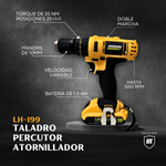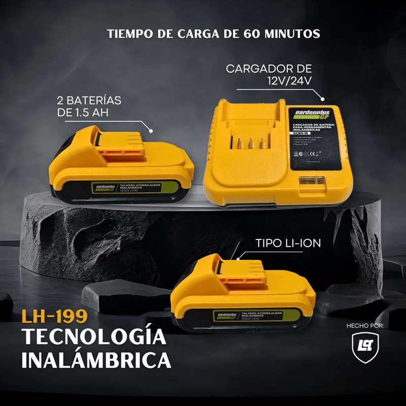 El GP-LH-199 incluye dos baterías inalámbricas de 1,5 Ah, asegurando que siempre tengas energía disponible para tus proyectos. Su cargador incluido permite una recarga rápida y eficiente, lo que maximiza el tiempo de uso y minimiza las interrupciones.
