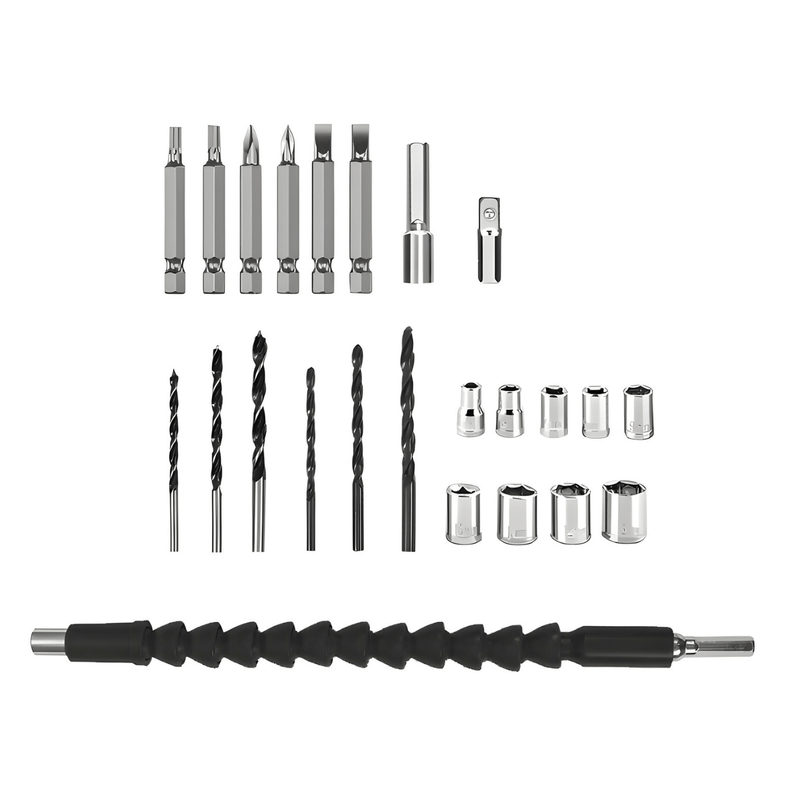 - 6 puntas destornillador (PH1, PH3, T20, T30, plano 5 mm y 7 mm)