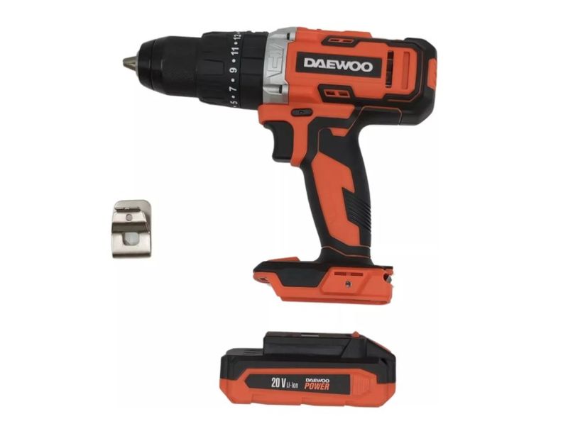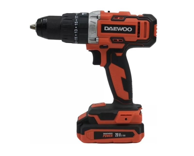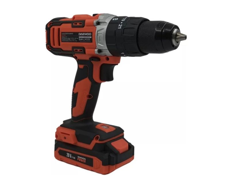 El Taladro Atornillador Percutor Inalámbrico 20V Daewoo DACD1120M es una herramienta potente y versátil, ideal para trabajos de perforación y atornillado en diversos materiales. Equipado con una batería de litio de 2Ah, ofrece hasta 5 horas de autonomía, permitiendo realizar tareas prolongadas sin interrupciones. Su motor de 20V proporciona una velocidad variable de hasta 1500 rpm, adaptándose a diferentes necesidades de trabajo. El mandril metálico de 13 mm (1/2") asegura un agarre firme y seguro de las brocas. Además, cuenta con función percutora, ideal para perforar materiales más duros como concreto. El control de torque con 21+1+1+1 posiciones permite un ajuste preciso según el tipo de tarea. Incluye un maletín para almacenamiento y transporte, una batería, cargador y clip para cinturón, ofreciendo una solución completa y práctica para profesionales y aficionados al bricolaje.