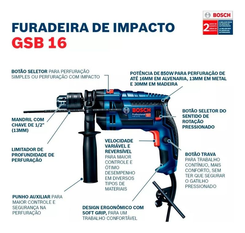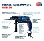 TALADRO PERCUTOR ELÉCTRICO 13MM BOSCH GSB16 RE C/MALETIN 750W