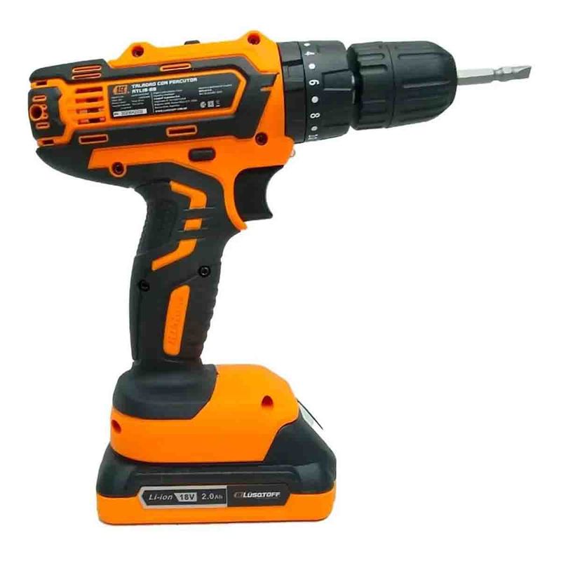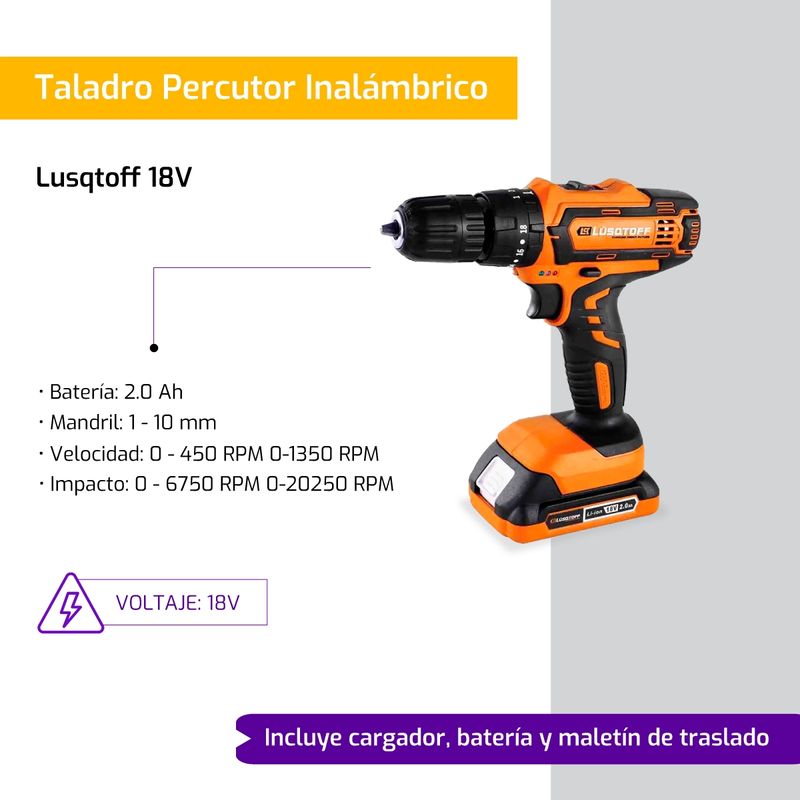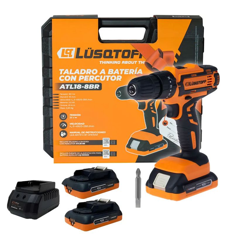 Taladro Percutor Inalámbrico 18V Lusqtoff Maletín + 2 Baterías ATL18-8BR