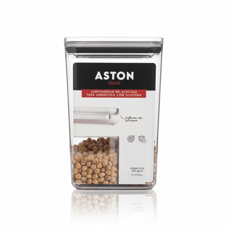 ¡Organiza tu cocina con estilo y eficiencia con el Contenedor Hermético Aston Home! Ideal para mantener tus alimentos frescos por más tiempo y optimizar el espacio en tu alacena.