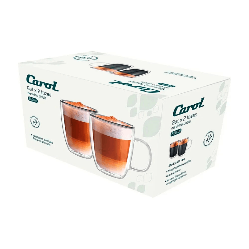 Disfrutá de tus bebidas favoritas con un diseño que combina estilo y rendimiento. El set de 2 Tazas de Doble Vidrio con Asa de 350ml de Carol está diseñado para transformar cada sorbo en una experiencia superior.