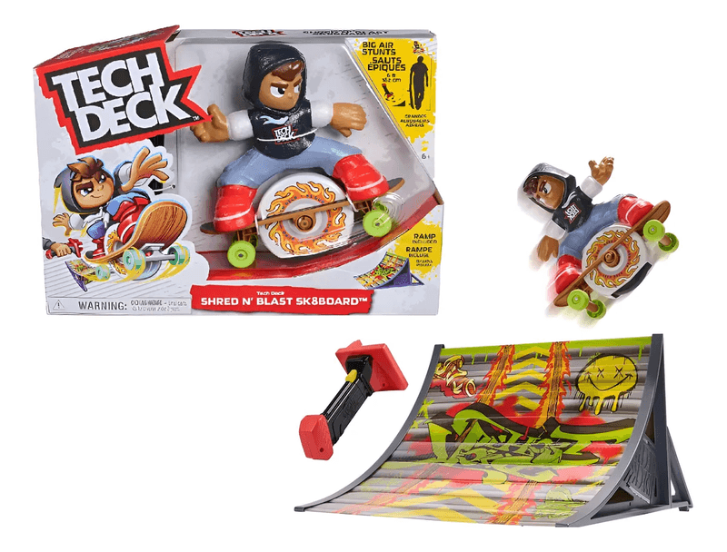 Viví la emoción del skate en formato mini con este playset Tech Deck que incluye una figura exclusiva, rampa y lanzador para hacer trucos y competiciones entre amigos.