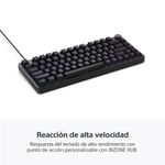 Desarrollados con FnaticNuestra asociación con Fnatic moldeó cada aspecto de este teclado. Al trabajar directamente con sus jugadores profesionales, ajustamos con precisión el formato compacto del 75 %, la respuesta táctil y la altura de la barra espaciadora, lo que nos permitió adaptarlo al ritmo y la presión de los juegos de torneo. Punto de actuación ajustable. Alta velocidad.Ajusta tu pulsación ideal. Configura el punto de actuación de 0,1 mm a 3,4 mm y obtén el control total de la velocidad y la sensación de respuesta, ya sea para ejecutar movimientos precisos o enviar comandos a toda velocidad. Activación rápida con control de pulsacionesTeniendo en cuenta los comentarios de los jugadores profesionales, las pulsaciones de los interruptores se configuraron en 3,4 mm. La tecnología de activación rápida te permite ajustar los puntos de ENCENDIDO (accionamiento) y APAGADO (liberación) de manera independiente, por lo que las entradas se registran más rápido sin tener que regresar a una posición de restablecimiento determinada, lo que te otorga una capacidad de respuesta superior. Interruptores de tecla con estabilizadores sólidos para teclear de forma estableLos estabilizadores sólidos y de doble riel de los interruptores minimizan la inestabilidad de las teclas para que las pulsaciones sean más suaves y que el retorno de las teclas sea uniforme, lo que mejora la estabilidad cuando se teclea y el rendimiento de la activación rápida. Estabilizadores para pulsaciones de las teclas suaves y uniformesLos estabilizadores dedicados mantienen las pulsaciones largas, como Shift y Espacio, suaves y uniformes, incluso si se pulsan fuera del centro. Tasa de sondeo ultrarrápida de 8000 HzCon una tasa de sondeo de hasta 8000 Hz, cada movimiento intencionado se registra al instante, lo que ofrece un control con una alta capacidad de respuesta y una sincronización precisa de la entrada bajo presión. Montaje de junta para una sensación suave, un sonido claro y sesiones de juego largasEl montaje de junta atrapa una placa de aluminio de 1,5 mm entre amortiguadores suaves, lo que absorbe las vibraciones, mejora la capacidad de respuesta y ofrece un sonido nítido y satisfactorio con una sensación más suave y fluida que resulta cómoda para largas sesiones de juego. Distribución compacta del 75 %. Más espacio para apuntar.La distribución compacta del 75 % te ofrece todas las teclas que necesitas, sin espacios innecesarios. Con un diseño concebido en conjunto con los mejores jugadores de Fnatic, el espacio reducido entre las teclas crea un factor de forma más ajustado que libera más espacio para mover el mouse, sobre todo para juegos FPS. El dial de volumen de aluminio integrado incorpora un control táctil rápido para que puedas realizar ajustes rápidos a mitad de una partida sin perder la concentración. Dial de control de volumen convenienteEl dial te permite ajustar el volumen sobre la marcha, lo que te permite mantener el enfoque en el juego y la mano en el mouse. Teclas de PBT de doble inyección. Diseñado para durar.Estas teclas de PBT, diseñadas con un moldeado de doble inyección, resisten el desgaste al mismo tiempo que ofrecen una sensación texturizada y táctil. Cada pulsación se mantiene precisa incluso después de innumerables horas de juego. Aluminio mecanizado. Forjado para durar.El chasis, diseñado con precisión a partir de aluminio mecanizado por CNC, ofrece mayor resistencia y un acabado de primera calidad. Ideado para resistir años de juego competitivo con una respuesta constante y durabilidad. Tus teclas. Tu iluminación.Crea tu propio perfil de iluminación RGB o comienza con el efecto predeterminado inspirado en INZONE. Lo configuras a tu gusto. Ilumínalo como prefieras. Ajusta con precisión gracias al INZONE HubDesde la activación y la respuesta rápida hasta la iluminación, la configuración de las teclas y los perfiles, el INZONE Hub te permite ajustar con precisión tu teclado según tu modo de juego. Está disponible en el software instalado y en el explorador web.