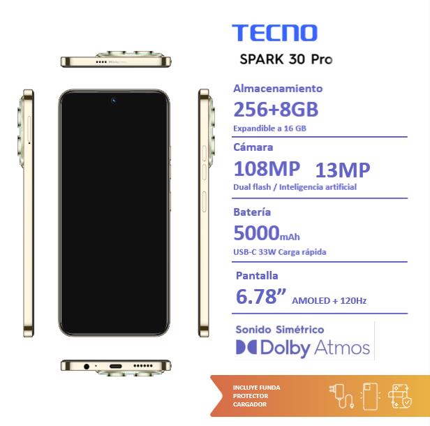 Equipado con el procesador MediaTek G100 (MT6789H) y 8 GB de RAM, el Spark 30 Pro te ofrece un desempeño ágil para tareas multitarea, juegos y navegación intensiva, sin demoras ni interrupciones.