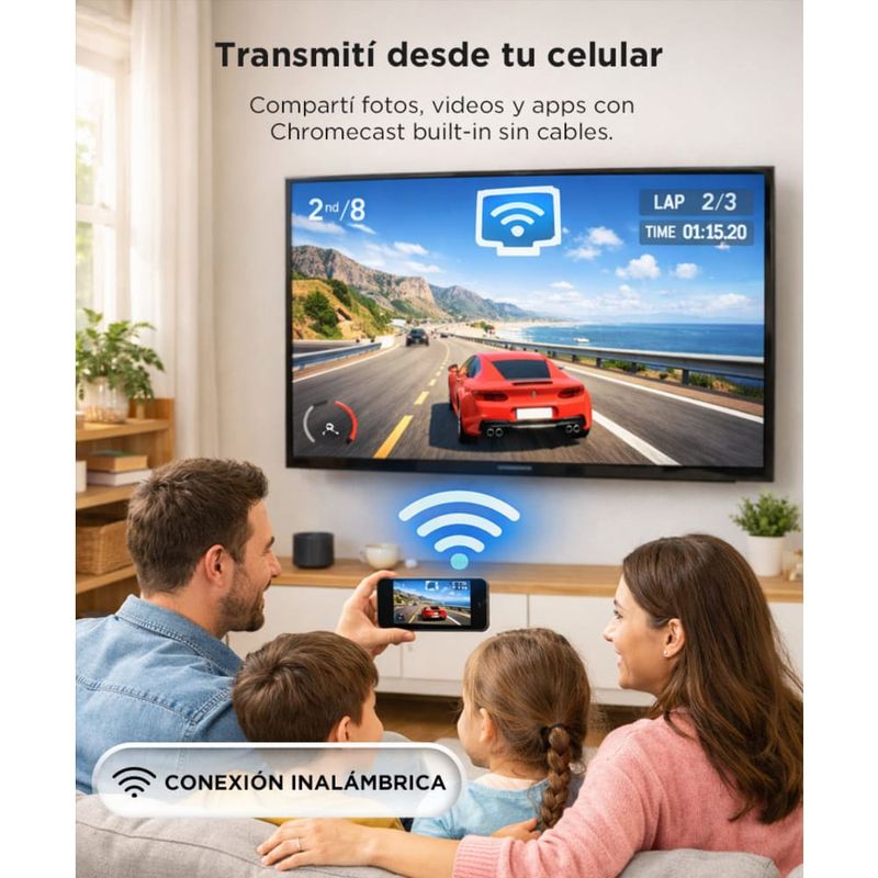 Incluye Chromecast integrado que permite enviar contenido desde el celular o la computadora al televisor. La conectividad wifi y bluetooth facilita la vinculacion con distintos dispositivos. Tambien incorpora Google Assistant para realizar busquedas y controlar funciones por voz. Todo esta pensado para un uso simple y practico.