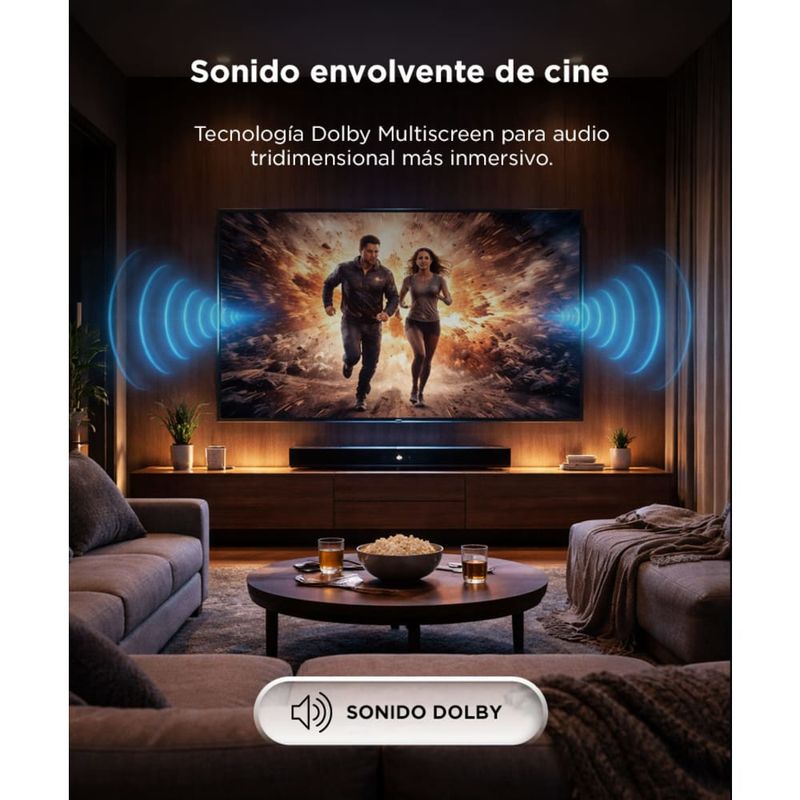 Cuenta con tres puertos HDMI y dos USB para conectar consolas reproductores y accesorios. Su formato delgado y color negro se adapta facilmente a cualquier ambiente. Incluye soporte VESA para montaje en pared. Es una solucion completa para el entretenimiento del hogar.
