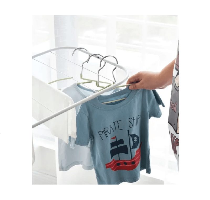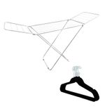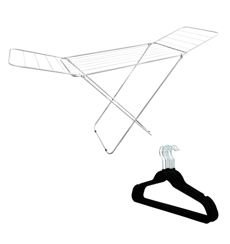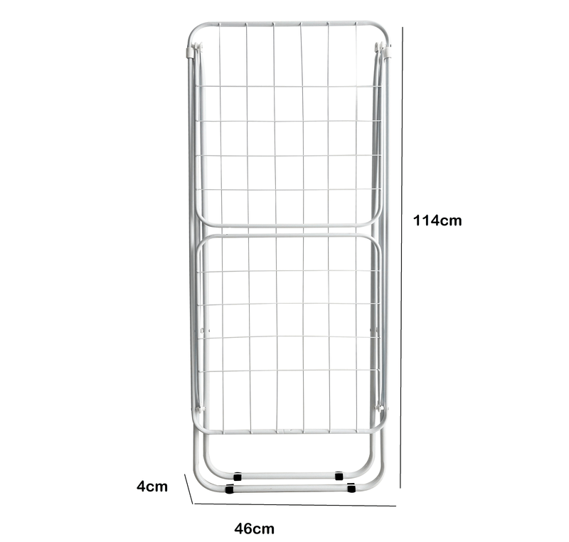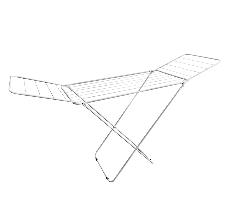 Elegante y practico Tender plegable de Pie con alas , fabricado en acero cubierto con pintura epoxi resistente a la humedad .