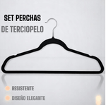 Set de ganchos con acabado de terciopelo perfectos para colgar abrigos, pantalones, blusas, vestidos y demás prendas sin que estas resbalen. Por su acabado en terciopelo es antideslizante y a su vez cuida las prendas. Cuentan con una función giratoria que por su versatilidad permite colocar la ropa de una manera más cómoda dentro del armario.