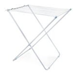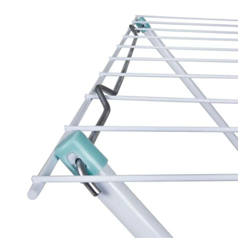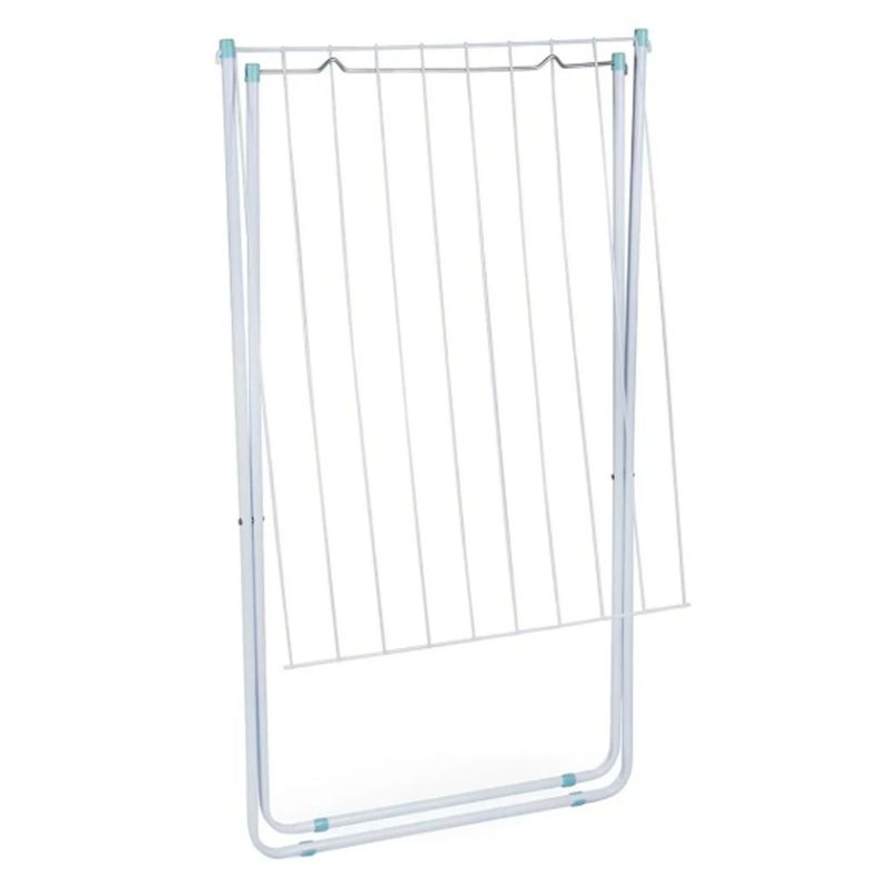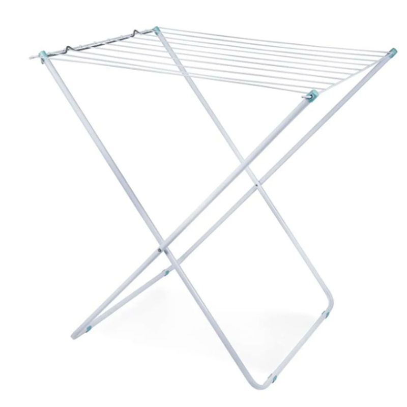 El tendedero de suelo Maxi es la forma más económica y ecológica de secar la ropa. Práctico y funcional, es perfecto para quienes tienen poco espacio en casa o apartamento. Se puede llevar fácilmente a cualquier lugar y, cuando no se usa, simplemente se pliega y se guarda en cualquier rincón. Su estructura está hecha de tubos y alambres de acero con un acabado de pintura epoxi en polvo blanca. Cuenta con diez varillas con una capacidad de hasta 7,85 m³ de ropa o 18 kg distribuidos. Sus piezas de plástico son de polipropileno, incluyendo las puntas de las patas que protegen el suelo. Con el tendedero de suelo Maxi de Mor, tus tareas diarias serán mucho más sencillas.