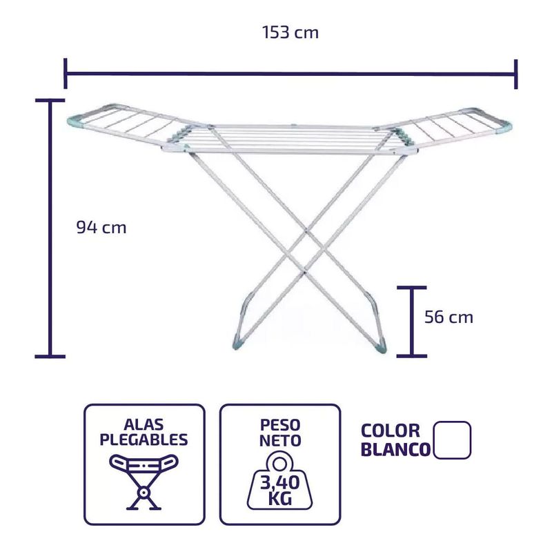 Medidas tender plegado: 122 x 56 x 7 cm