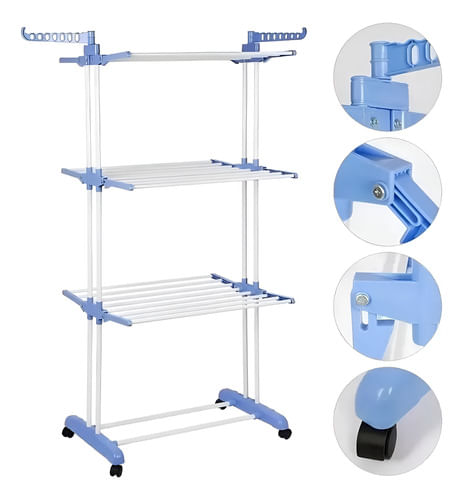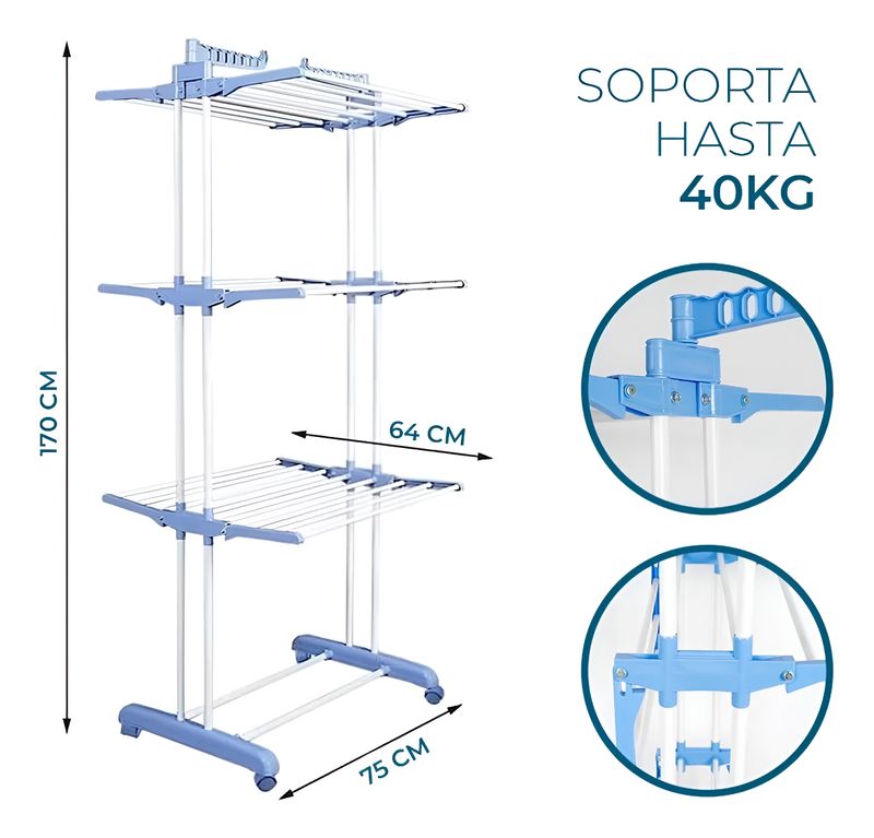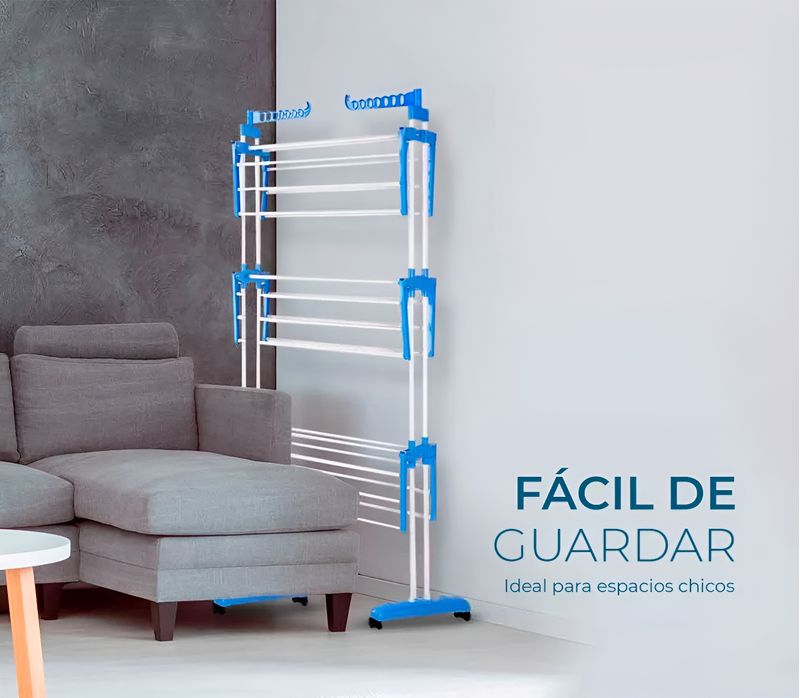- Producto ideal para colgar ropa luego del lavado tanto en exteriores como interiores y lugares pequeños.